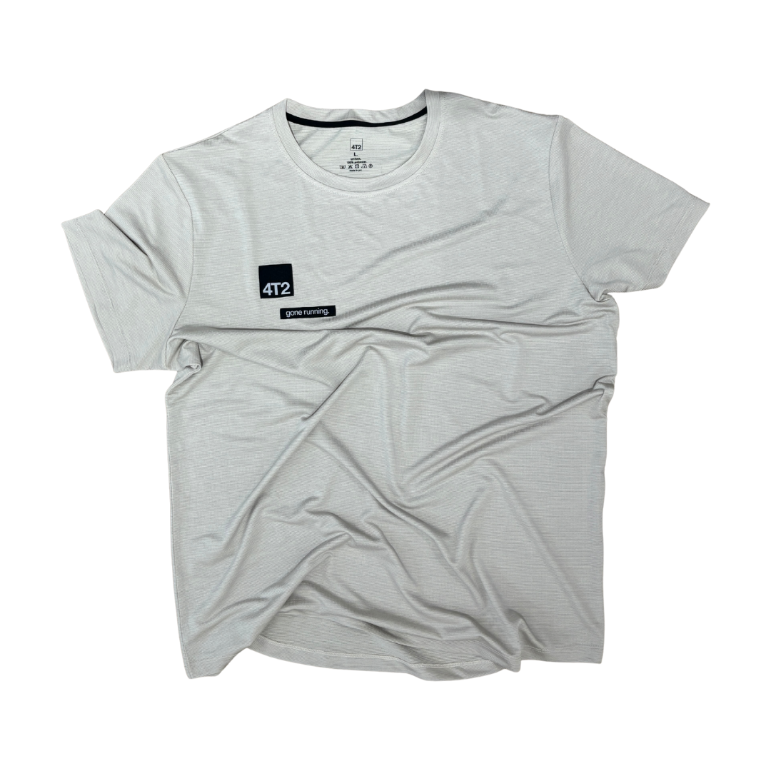 tee, gone running. raw white.
